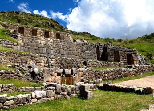 Conocido como el “Baño del Inca”, este santuario del agua posee canales y fuentes ceremoniales que aún fluyen con sorprendente pureza. Un lugar que simboliza la armonía del agua y la naturaleza en la cosmovisión andina.